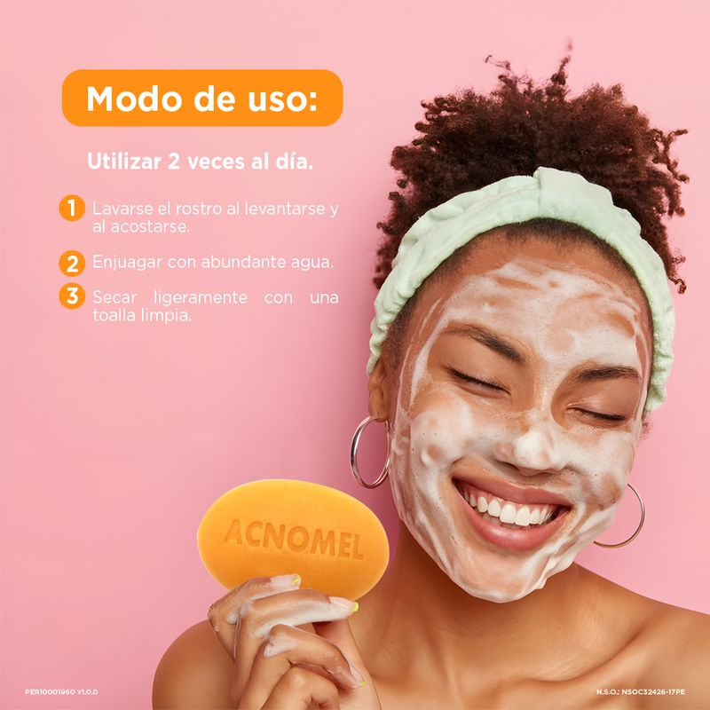 El jabón ACNOMEL® sirve para la limpieza profunda y ayuda a eliminar la grasa de la piel del rostro. Su fórmula combina los ingredientes que brindan una efectiva acción limpiadora y absorben el exceso de grasa dejando la piel suave y tersa.