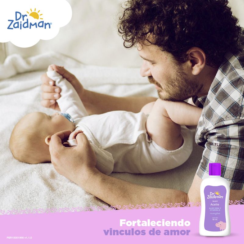 Fortalece el vínculo con tu bebé a través de suaves y amorosos masajitos que le ayudarán a relajarse y sentirse más seguro. El aceite del Dr. Zaidman® con Aloe Vera y Vitamina E, forma una película protectora que ayuda a mantener suave y lubricada la piel de su bebé.