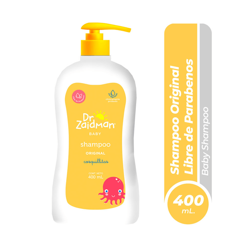 Baby Shampoo Original del Dr. Zaidman® contiene: AQUA (WATER); COCAMIDOPROPYL BETAINE; SODIUM LAURETH SULFATE; LAURYL GLUCOSIDE; GLYCERIN; COCO-GLUCOSIDE & GLYCERYL OLEATE; ETHYLHEXYLGLYCERIN & PROPANEDIOL; LAURDIMONIUM HYDROXYPROPYL HYDROLYZED COLLAGEN; PARFUM (FRAGRANCE); PEG-120 METHYL GLUCOSE TRIOLEATE & PROPYLENE GLYCOL & AQUA; DIMETHICONE PEG-7 ISOSTEARATE; FD&C YELLOW N° 5 (CI 19140) & FD&C YELLOW N° 6 (CI 15585); CITRIC ACID.