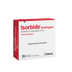 EspecificacionesContraindicacionesISORBIDE® SUBLINGUAL 5MG TABLETA SUBLINGUAL no debe utilizarse si es alérgico al dinitrato de isosorbida, a otros compuestos de nitrato o a cualquiera de los demás componentes de este medicamento, en insuficiencia circulatoria aguda (choque, colapso), en caso de shock desencadenado por insuficiencia cardíaca (shock cardiogénico), a menos que se tomen las medidas apropiadas para asegurar una presión de llenado suficientemente alta en el corazón (ventrículo izquierdo, presión telediastólica), si padece una enfermedad del músculo cardíaco con estrechamiento del interior del corazón (miocardiopatía hipertrófica obstructiva), inflamación del estrechamiento del saco que rodea el corazón (pericarditis constrictiva) o taponamiento cardíaco (taponamiento pericárdico), si tiene la presión arterial muy baja (hipotensión grave), es decir, si la presión arterial sistólica es inferior a 90 mmHg, si la cantidad de líquido en su cuerpo está muy reducida (hipovolemia grave), si padece anemia grave, durante el tratamiento con ISORBIDE® SUBLINGUAL 5MG TABLETA SUBLINGUAL no debe tomar medicamentos para el tratamiento de la disfunción eréctil que contengan inhibidores de la fosfodiesterasa tipo 5 como principio activo, tales como sildenafilo, vardenafilo o tadalafilo, no debe utilizar medicamentos que contengan riociguat (un principio activo utilizado para tratar la hipertensión pulmonar) mientras esté en tratamiento con ISORBIDE® SUBLINGUAL 5MG TABLETA SUBLINGUAL.ComposiciónCada tableta de ISORBIDE® contiene: Clorhidrato de Isosorbida, 5 mg.PresentacionVentaCaja x25Item destacadosRegistro SanitarioEN-01310Receta MedicaRequeridoRx